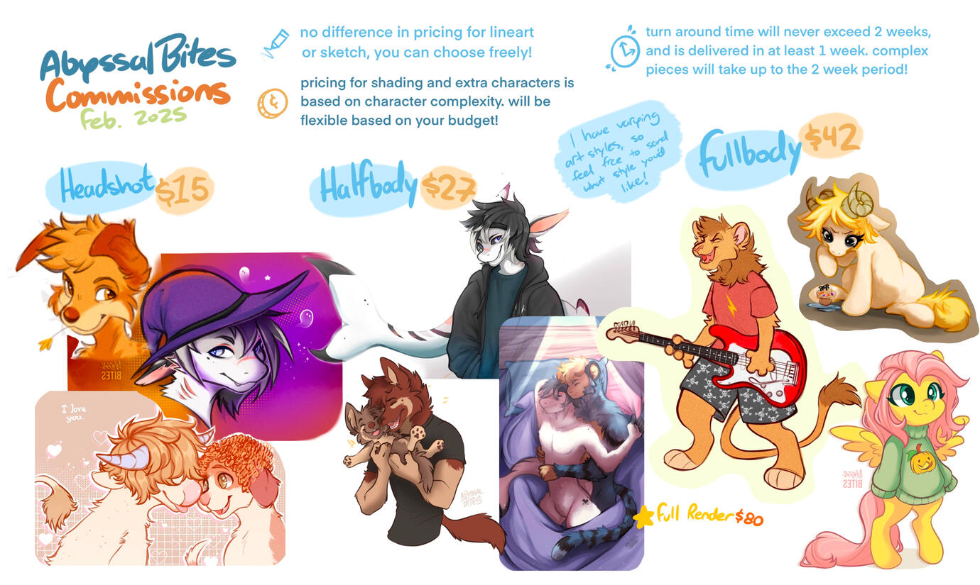 Please contact me through any of my socials to start the commission process! Avoid saying "hi" or "hey" though. Feel free to hit me with a paragraph of what you'd like!